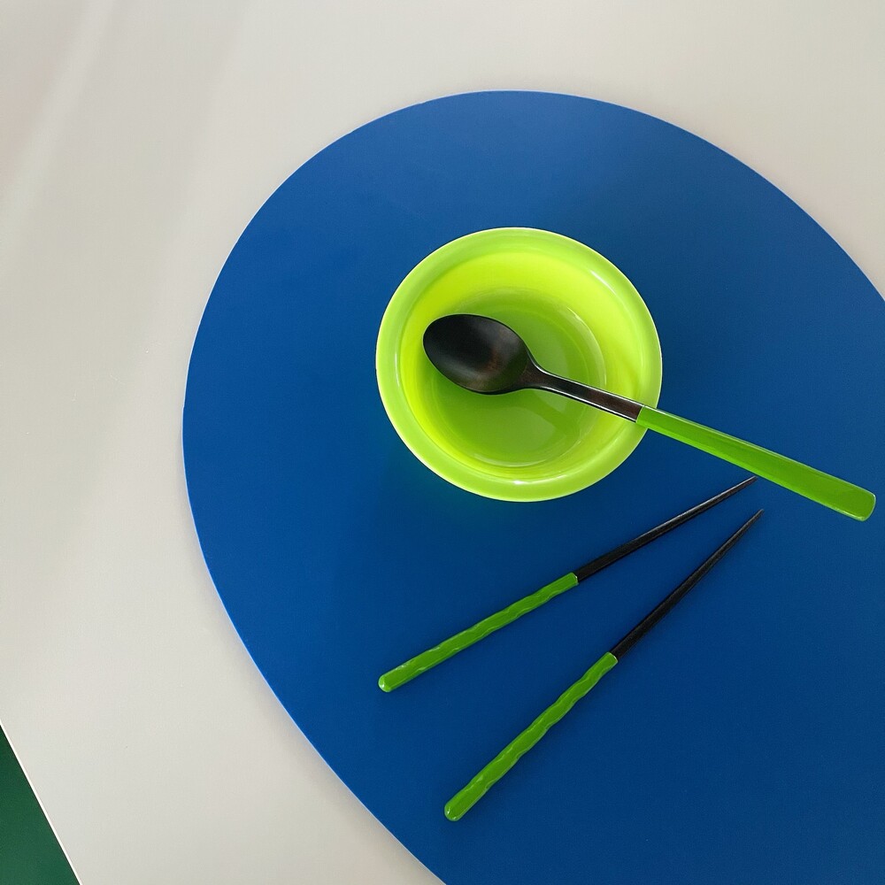함께 촬영된 블루 컬러의 아크릴 테이블매트는