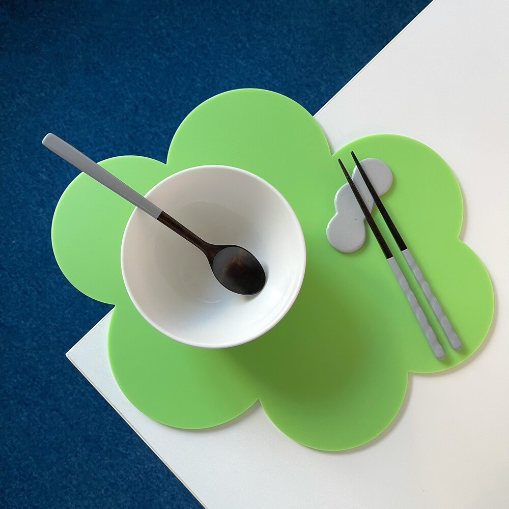 함께 촬영된 블루 컬러의 아크릴 테이블매트는