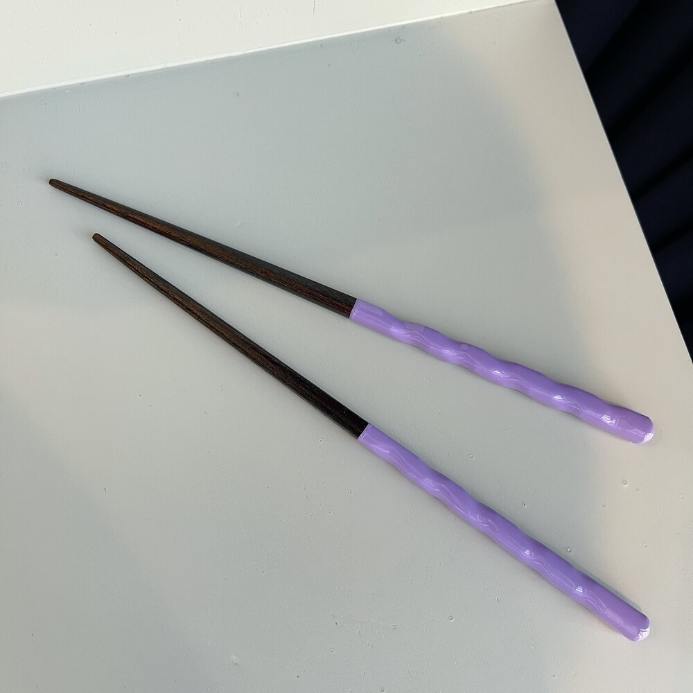 습도에 약한 천연옻칠을 수저에 하나하나 색을 입히고 건조시키는 과정을 여러번 반복하여